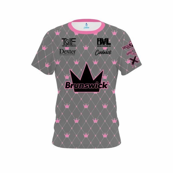 .Stefanie Johnson Brunswick Pink Gray Crowns CoolWick Bowling Jersey